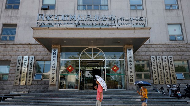 人们走过位于中国北京的国家互联网信息办公室 (CAC) 办公室 路透社图片