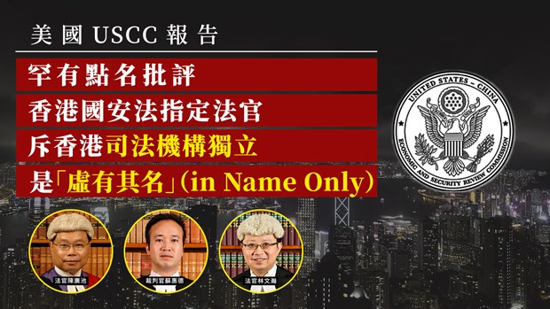 美国「美中经济与安全审议委员会」(USCC)年度报告中,重点批评在《港区国安法》下,香港司法独立受损,并质疑法官处理国安法案件的公正性。 粤语组制图