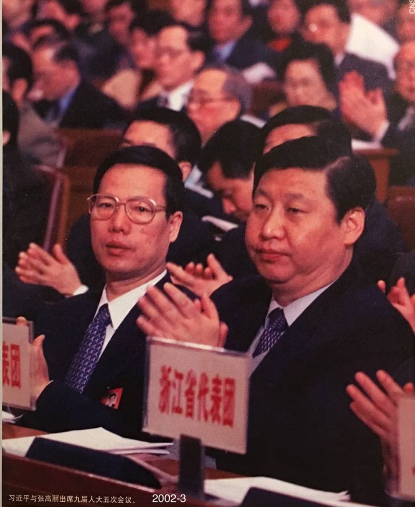 图说——2002年的习近平与张高丽出席九届人大会议。此时习刚从福建省长调任浙江省长,41岁。同时获得清华大学在职研究生班之法学博士学位。 5年后任上海市委书记、2007年17大一步登天任政治局常委。张高丽比习大7岁,文革前大学生,出生平民家,在广东政坛30年,2002年任山东省长,和习一道出席人大。 2012年成为政治局常委,国家领导人。第一副总理。 2018退休,2021年11月被运动员彭帅爆出性丑闻。 75岁。这是两位出身不同的中共领导人的中途相遇。