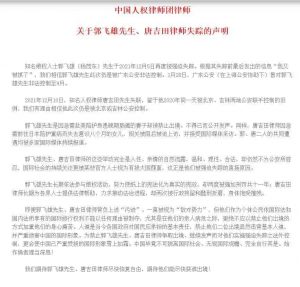我们期待郭飞雄先生、唐吉田律师尽快恢复自由,期待他们能尽快获准出境!