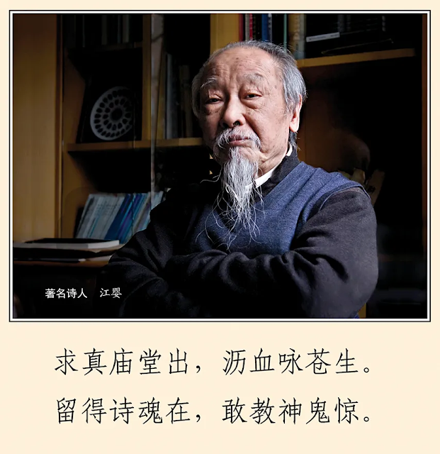 1988年4月,他被批准离休并给了一个“司局级待遇”。在那些当初以整人为术者看来,他的人生终点似乎因为组织施恩而获得了圆满结局。但脱离了让他爱怨交织的职业生涯的“出世”江婴,却从离休的那一刻起,饱经风雨积蓄了更多思考的他却成为了以诗为言、痛思乾坤的“入世”诗人。也是从那一刻起,江婴为中国的诗坛奉献了不仅独具美学价值而且更兼睿智犀利之思想内涵的撼世诗篇。