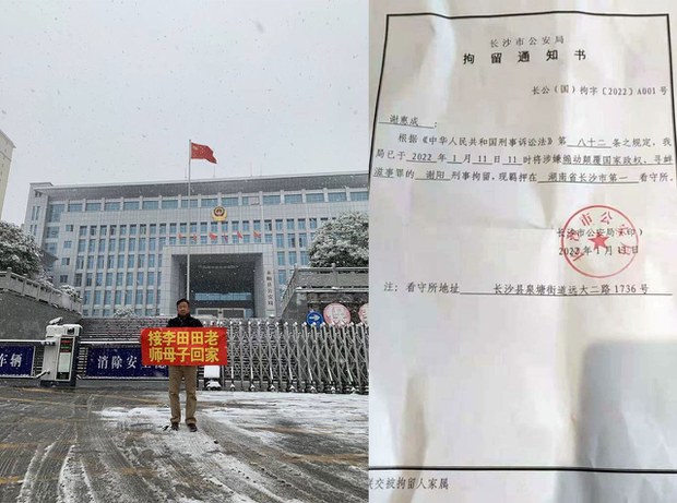 谢阳此次再遭当局刑拘之前,曾前往湖南永顺县声援因发表网络言论而被强行关进精神病院的怀孕女教师李田田。但在李田田获释后不久,谢阳即被拘留。
