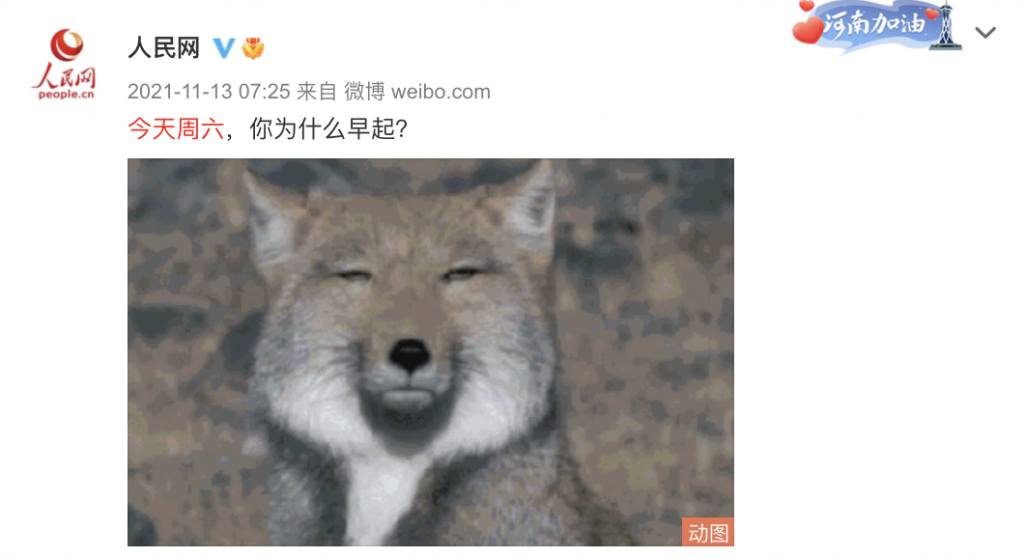 1月17日,推特网友@big_ear_cat爆料称上周六(15日)人民网官方微博发布了一条动态“今天周六,你为什么早起?”评论区却出现大型翻车事故,不少微博网友统一回复“因为劳动法是摆设”以此抗议普遍的996工作制。