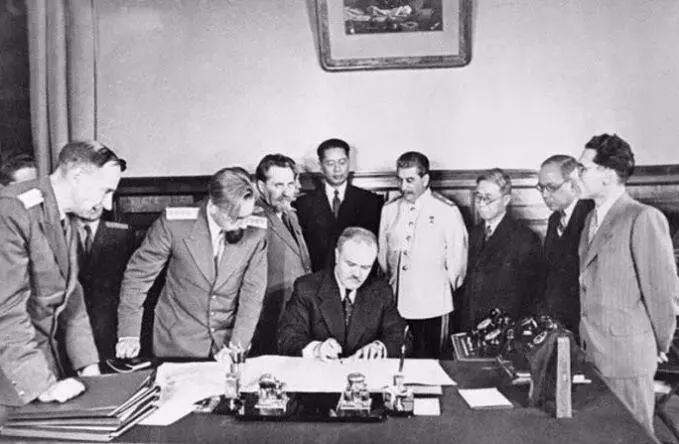 1941年4月13日,斯大林和莫洛托夫在莫斯科同日本签署苏日中立条约。