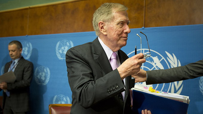 资料图片:联合国人权理事会协商小组举行的一次会议(美联社)