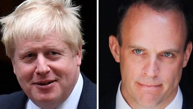 Image caption拉布(右)被指定在约翰逊首相无法工作时代理其职责
