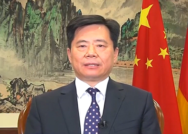 中國駐德國大使吳懇4月7日接受央視採訪時,不理德國政府釋放的經濟信號,繼續宣傳中國是德國「最大的貿易夥伴」,堅信疫情之後兩國貿易會反彈。(中國駐德國大使館官網圖片)