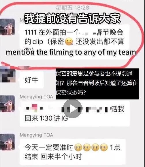 视频里女二喊了两个男生的名字,让他们过来。由此,我觉得可以推断这个时候,在场的华人春晚祝福摄制组(具体拍啥咱也不好说,反正女主现在的回应视频说是春晚,还是公益,咱就姑且信之吧)可能就这仨,其他人,包括男女主都还不在场。