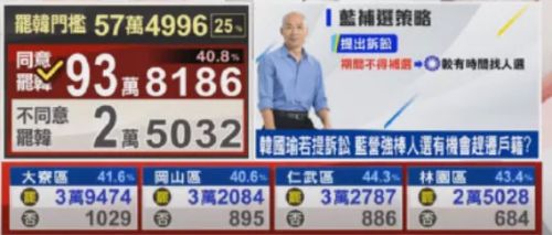 今天下午四点,高雄市长韩国瑜罢免案开票,这位一度高票当选市长,并代表国民党参加今年台湾地区领导人选举的韩国瑜,遭遇了惨绝人寰式,以近93.8万票罢免对2.5万不同意罢免。