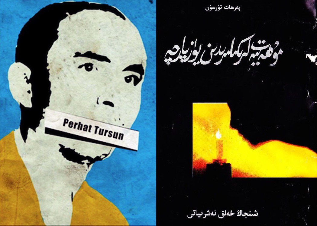 帕尔哈提是着迷于古典文学和西方哲学的诗人,矢志于书写他所关注的人类的处境,但他仍旧无缘无故地消失了。左图为声援帕尔哈提的宣传图,右为帕尔哈提的维吾尔文诗作《情诗一百首》。 图/Free Rahile Dawut