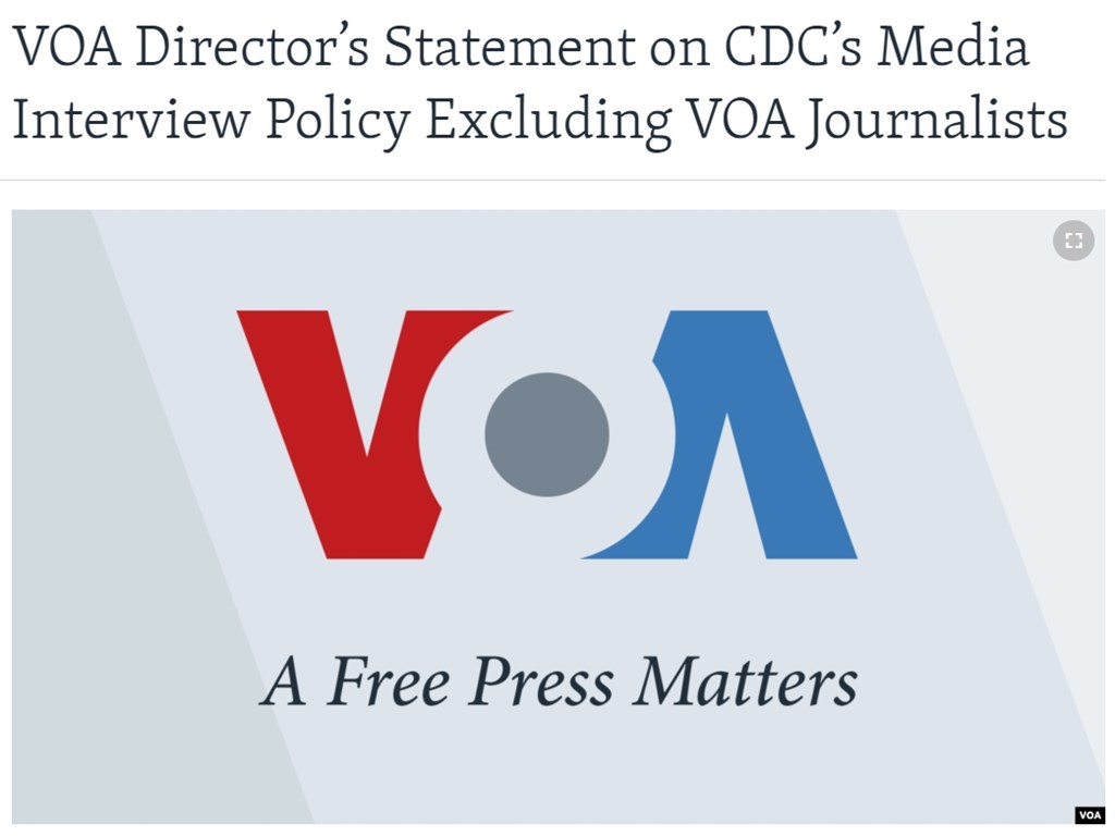美國之音(VOA)台長班奈特(Amanda Bennett)今天發布聲明表達「震驚」,說美國之音是經費來自國會的獨立新聞機構,而CDC這樣一個聯邦機構的公共事務部門,卻因白宮在社群媒體推文,指美國之音轉推的一則美聯社疫情報導是中共「文宣」,便直接封殺他們記者事前提出的採訪要求,著實令人不安。