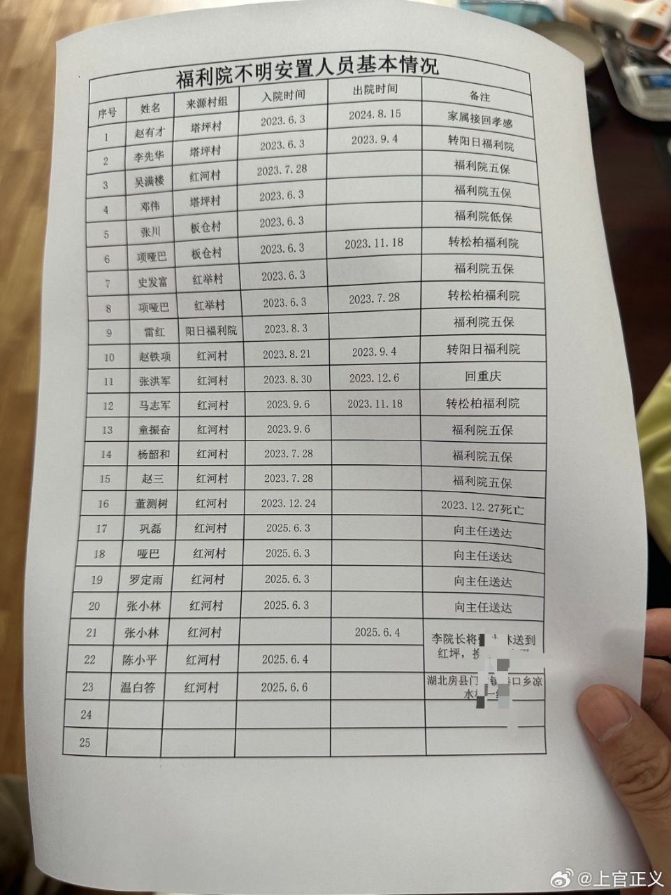 备注:福利院称,统计的名字,均为农户自己为残障人员起的名。@人民日报 @新华社 @中国政府网 @湖北发布 @邓飞 @半月谈 @新京报