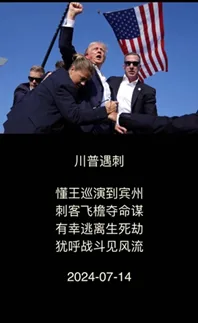 懂王巡演到宾州,刺客飞檐夺命谋。有幸逃离生死劫,犹呼战斗见风流。