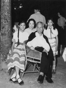 和毛女合影(原载开放杂志)、在其父旧居前。