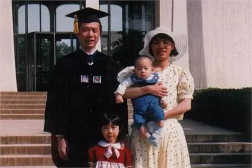 1987年7月,杨小凯在普林斯顿大学毕业,与夫人吴小娟和孩子合影