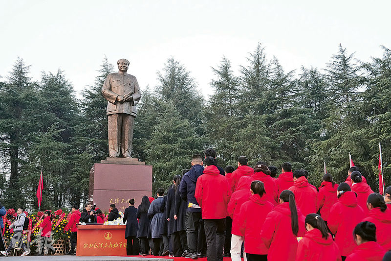 中新社报道,位于核心景区的毛泽东广场人头攒动,在工作人员的引导下,民众有序向毛泽东铜像敬献花篮、鞠躬致敬。 20岁的广东青年罗城凯与好友首次来韶山,他说,民众纪念伟人的场景,让他体会到吃水不忘挖井人的深意。