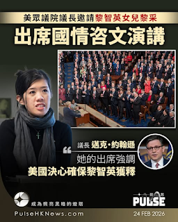 美国众议院议长迈克‧约翰逊(Mike Johnson)表示会邀请黎智英女儿黎采,出席总统特朗普今(24日)在国会发表的国情咨文演讲,约翰逊指出,黎采获邀出席显示出美国确保黎智英获释的决心。