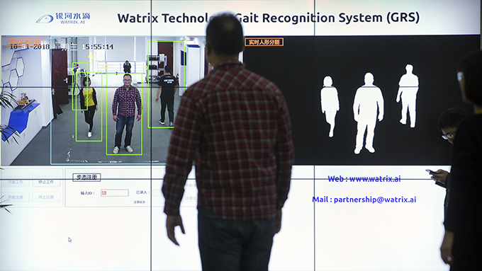 中国企业“银河水滴”展示其开发的步态识别软件(美联社)