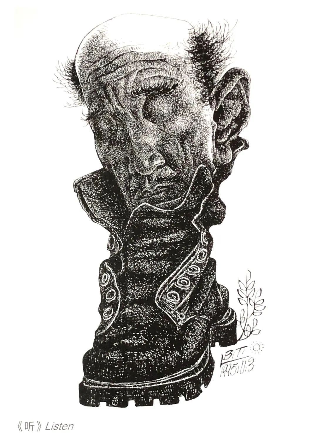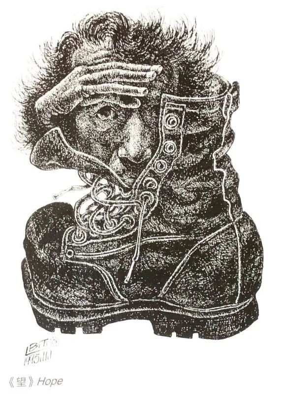 刘罗锅的李保田佝偻着腰身,是一个“丑角”;靴子的李保田面目扭曲,也是一个“丑角”。绝不遮掩,绝不粉饰,他用“丑角”的形态,揭开了我们这个古老民族的历史的面具——“被人揭下面具是一种失败,自己揭下面具却是一种胜利。”(《海上劳工》雨果)无论在影视界还是美术界,无论那些大红大紫的既得利益者如何评价,李保田都是胜利者。他勇敢地敞开了艺术世界的存在物(靴子和刘罗锅)中所蕴含的真理。真理一旦被敞开,美就产生了。所以,海德格尔把美看做是“敞开发生的真理的一种方式”。所有存在主义哲学家在追问存在的问题时,最后都会自觉不自觉地转向艺术,转向美学。美学和艺术,是开启存在者的存在的钥匙,是打碎束缚人的各种现实锁链的力量,是通向“以实现人的自由为主的实践领域的途径。”艺术的自由是李保田一生的追求。或许正是为了表达这种追求,他出版了一部画册。很沉,有三公斤重,收集了他三十多年来的300多幅作品——靴子里的自画像,是我最喜欢的一组。他的画作,和他表演的刘罗锅、喜来乐、天青、王保长、李酒瓶同样精彩。然而他却说:“我更看重我的美术创作,因为它比影视表演更自由更自我。”读李保田的画,每一幅都像是一篇艺术自由的宣言——因为某种不可言说的原因,他对艺术自由的渴望,甚至比海德格尔时代的存在主义美学更为强烈。就审美形式而言,李保田的作品题材丰富,风格多样,绘画语言更多的是解读事物的内涵,而不仅仅只是视觉表象来描绘事物的形象,这种特性可以归为现代艺术类——笔者个人的感觉。不知道是不是因为受了毕加索的影响,他较少做色彩的渲染,作品的美更多地表现在物象的造型组合上。他尤其擅长捕捉隐匿在事物背后的思想、灵魂、情绪,借助隐喻,用一种“风马牛效应”随心所欲地把毫不相干的东西融合在一起,看起来有些荒诞,但由此而塑造的物象,既囊括了空间,也囊括了时间,具有很强的现实观照性。从《李保田作品》的作品中,笔者看到了当今时代的一个奇特的审美现象:一位表演艺术家,用存在主义的哲学思考,创作了毕加索风格的美术作品。