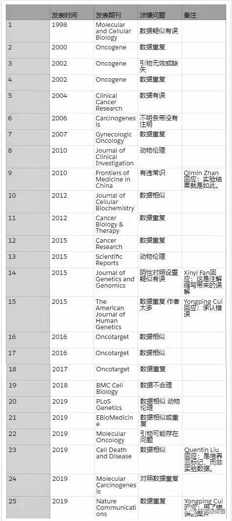 海外著名的打假網站PubPeer於近日爆料稱,中國北京大學常務副校長詹啟敏涉嫌論文造假,涉案的25篇論文時間跨度竟長達20年之久。梳理發現,這 25 篇涉及論文發表的時間從 1998 年到 2019 年。