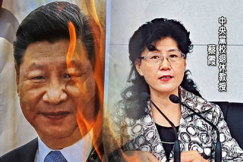 蔡霞(前)今日再流出一段录音,她痛批中共用暴力恐怖维持极权体制,不亚于希特勒法西斯,并分析中共垮台的三种方式,还爆出现在中国政府财政没钱。(左图取自欧新社、右图取自微搏,本报合成)