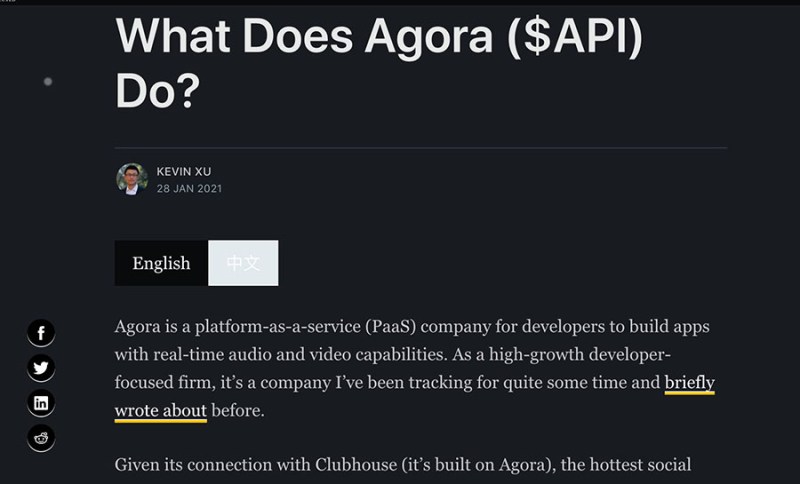 可点阅文章原文《What Does Agora ($API) Do?》,供有兴趣的朋友参考。