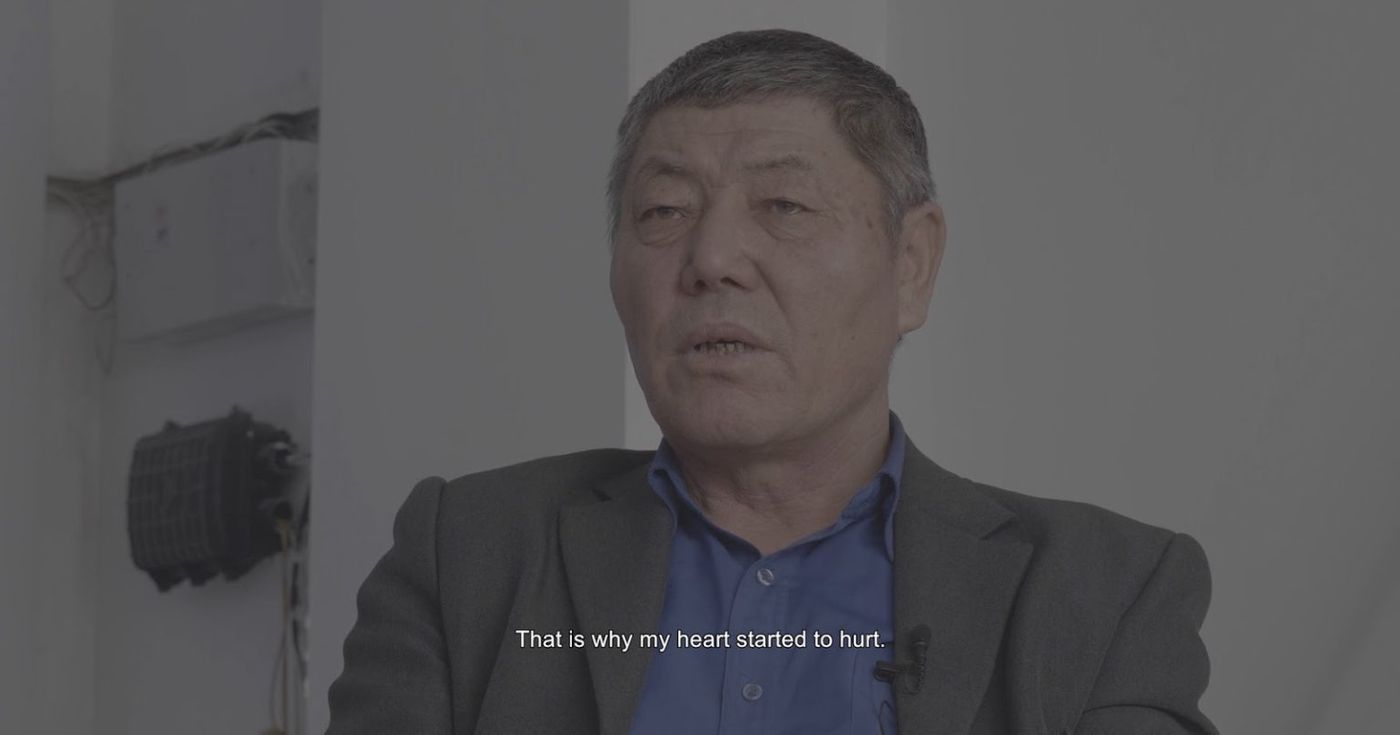 两位制片人对努尔兰·库合都伯(Nurlan Kokteubai)的采访展现出一种毫无修饰的诚实,同时它也典型体现了我所见到的国家暴力在其受害者身上造成的空白状态。被采访的对象是一名56岁的哈萨克族教师努尔兰·库合都伯,来自位于中国与哈萨克斯坦相邻边境上的察布查尔县。他是村干部的儿子,在九年制义务教育之后又接受了两年儿童教育专业的培训,所以他和他的妻子(他们在附近的一所师范学校结识)成为他们社区中的领袖是一件再自然不过的事情。像大多数维吾尔族和哈萨克族村民一样,他当时并不知道,由国家发起,将汉族移民和基础设施建设带入新疆农村社会的“ 西部大开发运动”将导致哈萨克族社会制度的根本转变。他们的教育体系、实践信仰的方式、语言、基层政治结构、甚至他们家庭的完整性都将经历断裂、剥夺和取代。