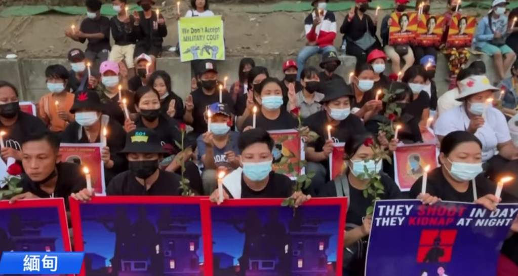 缅甸的军事政变群众发起示威反抗军政府,军方开枪镇压,已经造成多人死亡。图/撷自公视新闻2021.2.22影片