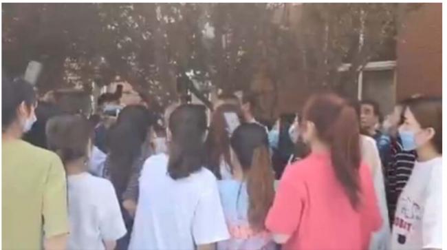 网传视频指,山西大学商务学院学生抗议,并高喊“罢课”。(视频截图)