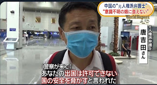 唐吉田律师看望女儿,出境被阻引起日本媒体的关注。