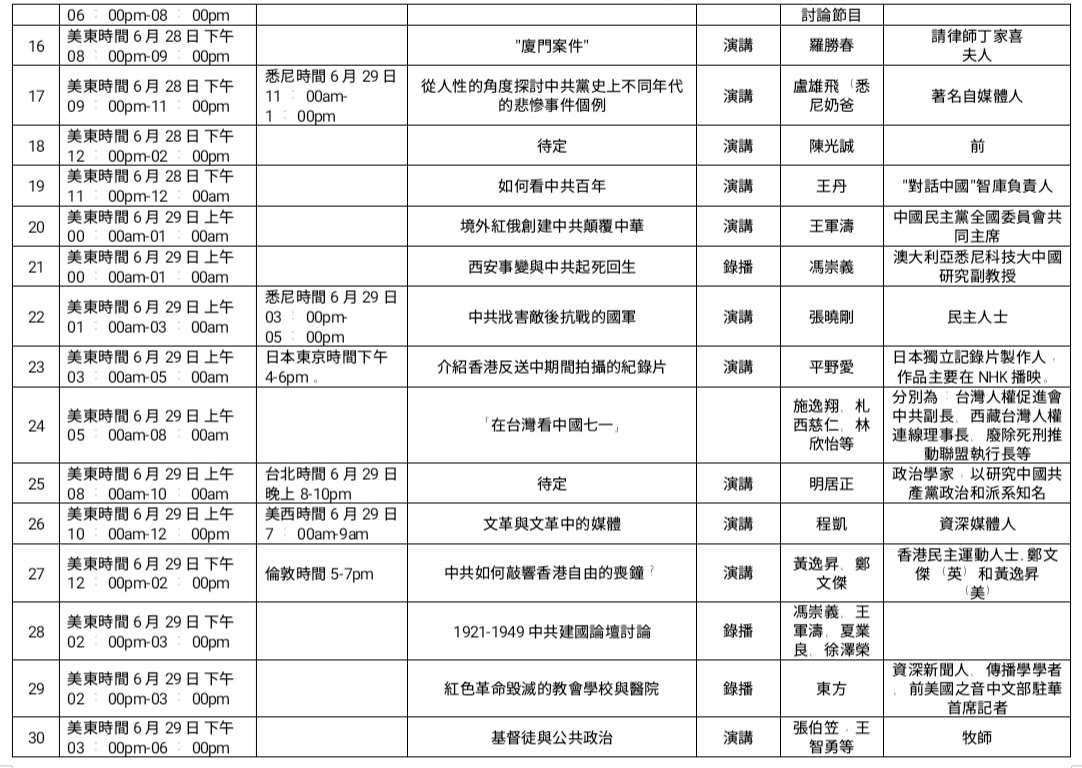 鲍彤  蔡霞  陈光诚  陈奎德  程凯  慈诚嘉措  冯崇义  傅希秋  胡平  金钟  李进进   鲁难  罗胜春 茅于轼  潘永忠  宋永毅  苏晓康  王丹  王军涛  王志勇  席海明  张伯笠  张伟国(按姓氏笔画排列)