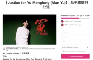 “为于朦胧讨公道”全球连署 已逾50万人声援